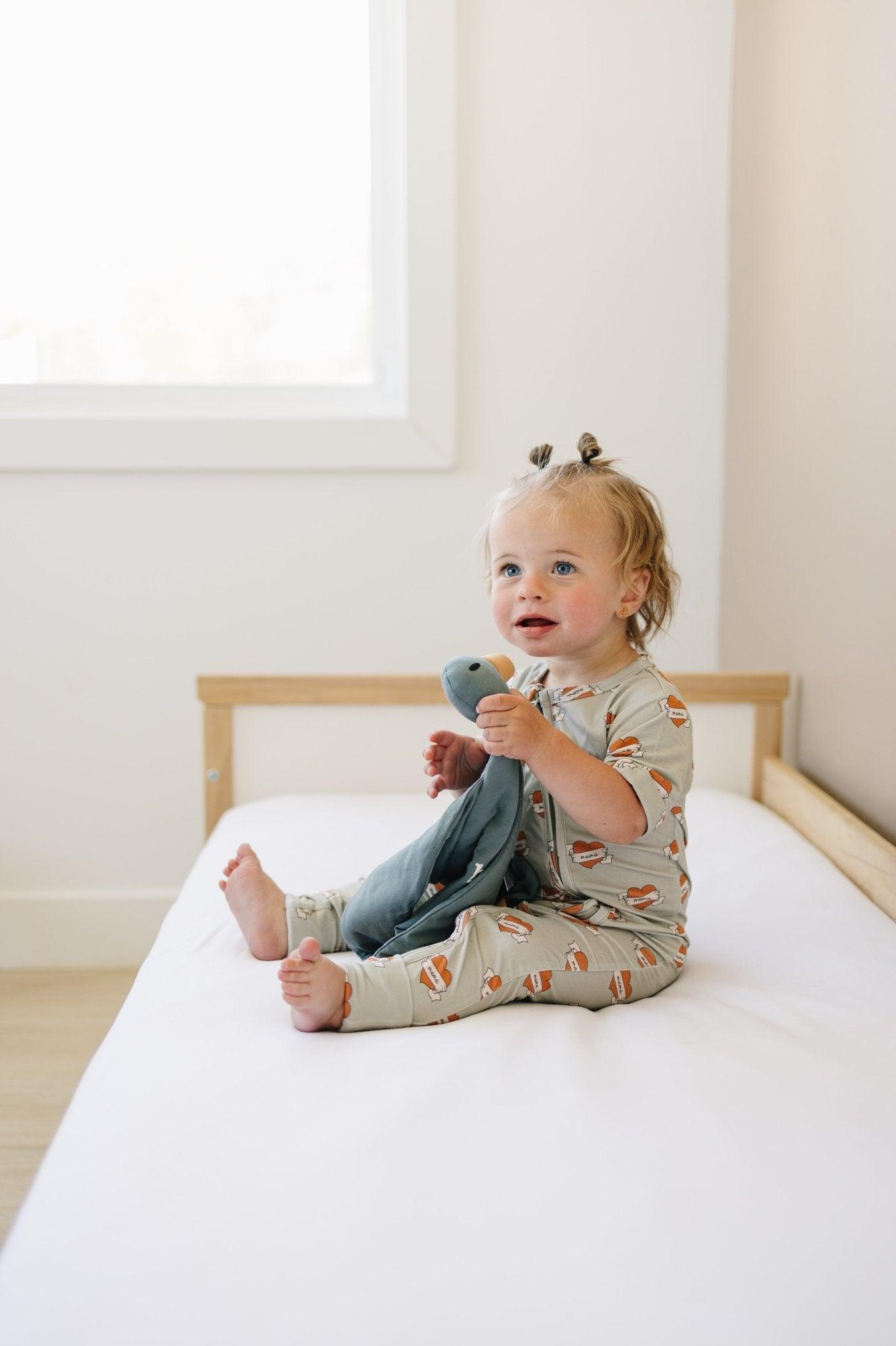 We've chosen a premium blend of 95% bamboo viscose and 5% spandex for the body, ensuring a silky-soft and breathable texture. The plush head and body are generously filled with a down alternative, creating a snuggly haven for your child.