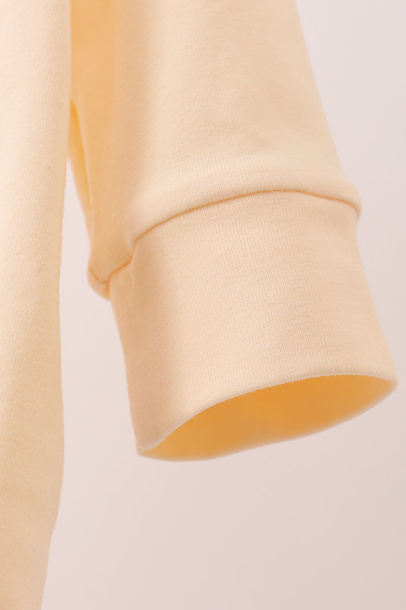 Add a touch of whimsy to your look with this Beige Turkey Embroidery Bubble. Its soft beige fabric features charming turkey embroidery, making it a playful and cozy pick for any casual day. Perfect for those who love unique, fun details in their wardrobe!