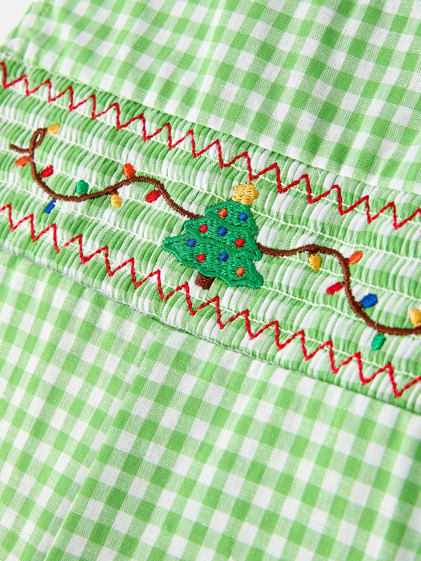 Christmas Tree Smocked Baby Romper with Green Plaid