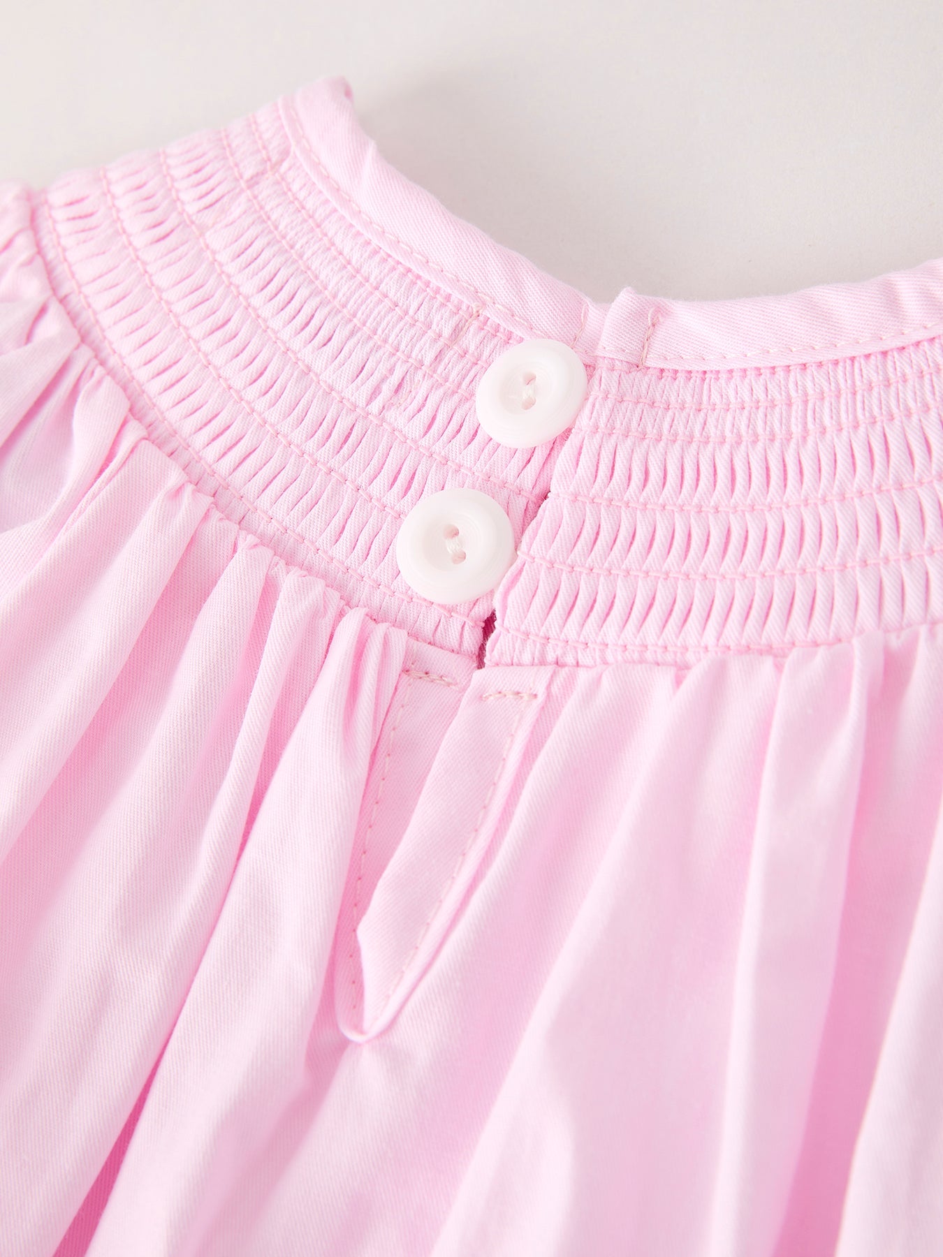 Celebrate the spooky season in style with this adorable baby girl romper. Featuring charming pink spider, pumpkin, and ghost embroidery on a soft smock design, it combines festive fun with cozy comfort. Perfect for fall outings or Halloween photos, this romper keeps your little one snug while adding a playful touch to their wardrobe. Easy to wear and irresistibly cute, it’s a must-have for your baby’s seasonal collection.