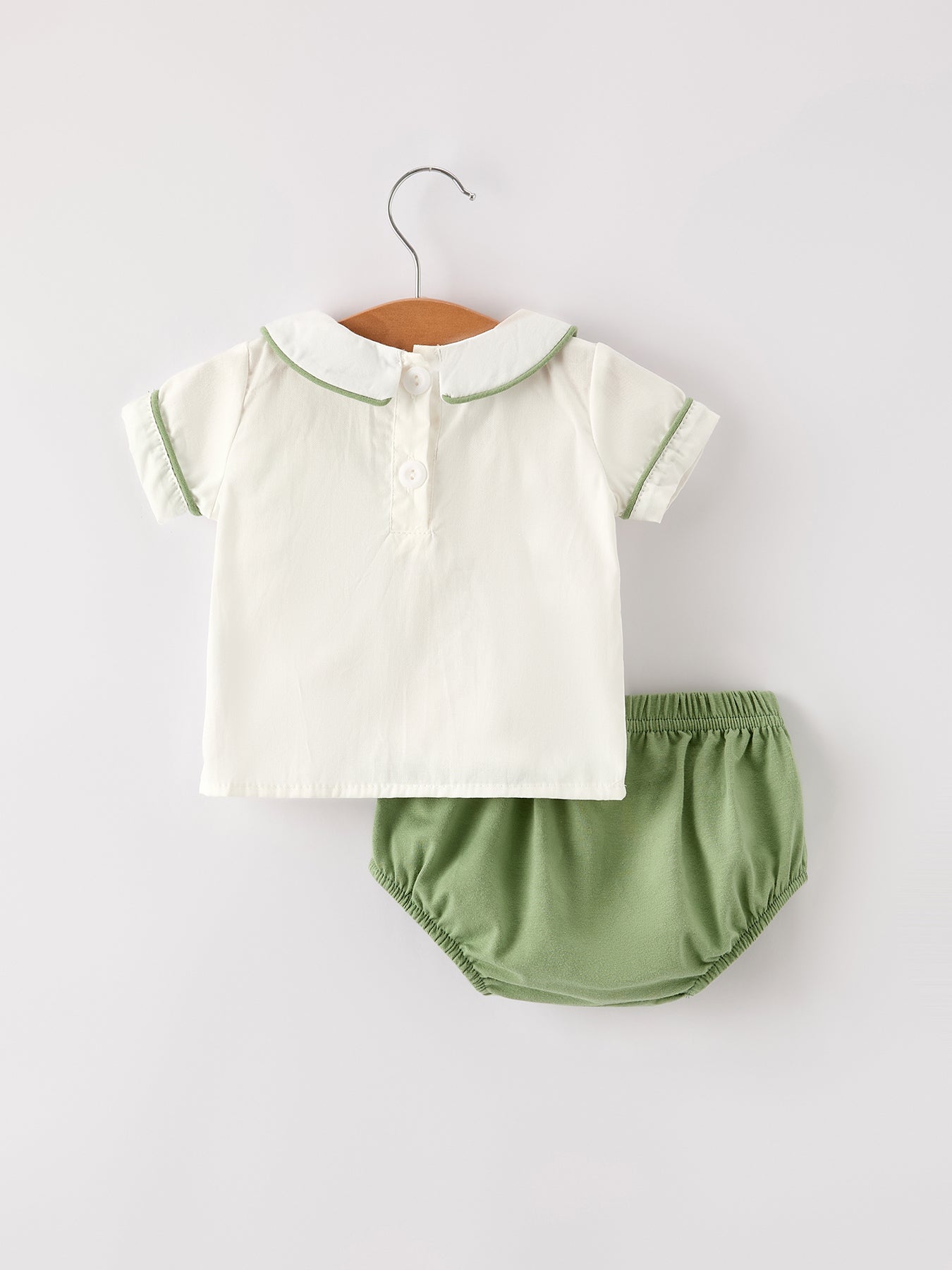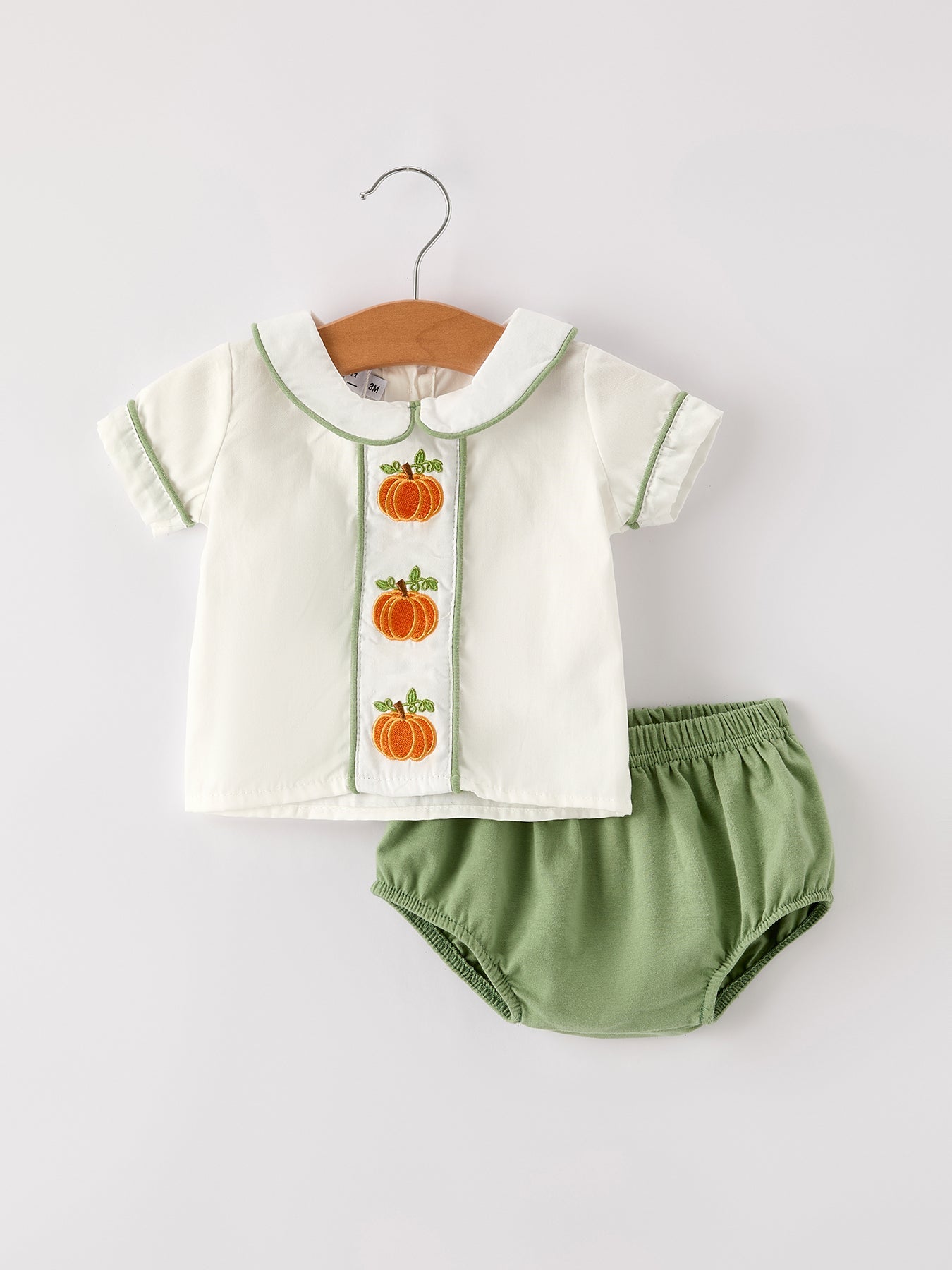 Celebrate the season in style with this Fall Halloween & Thanksgiving Applique Plaid Boys Bloomers Romper Set. Crafted with cozy plaid fabric and festive appliques, it offers both comfort and charm for your little one. Perfect for holiday gatherings and photos, this romper set combines seasonal spirit with easy wearability, making it an ideal choice for memorable autumn moments.