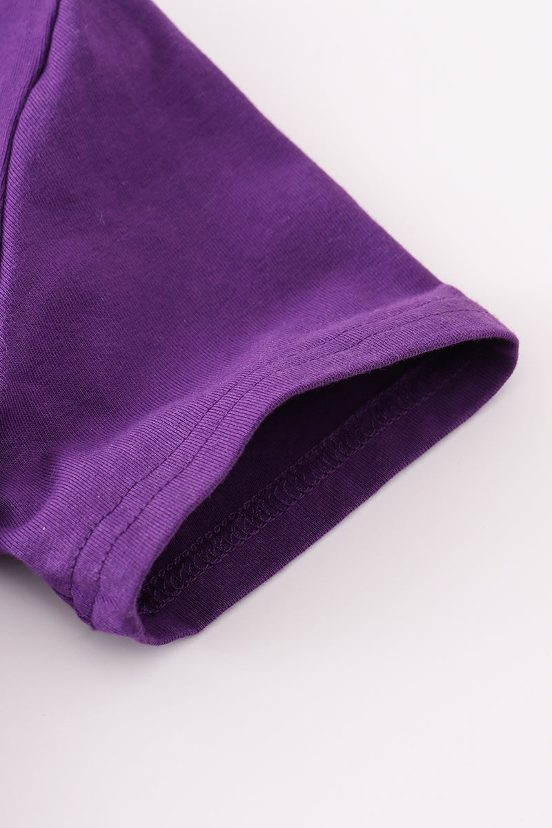 Purple football embroidery button down shirt